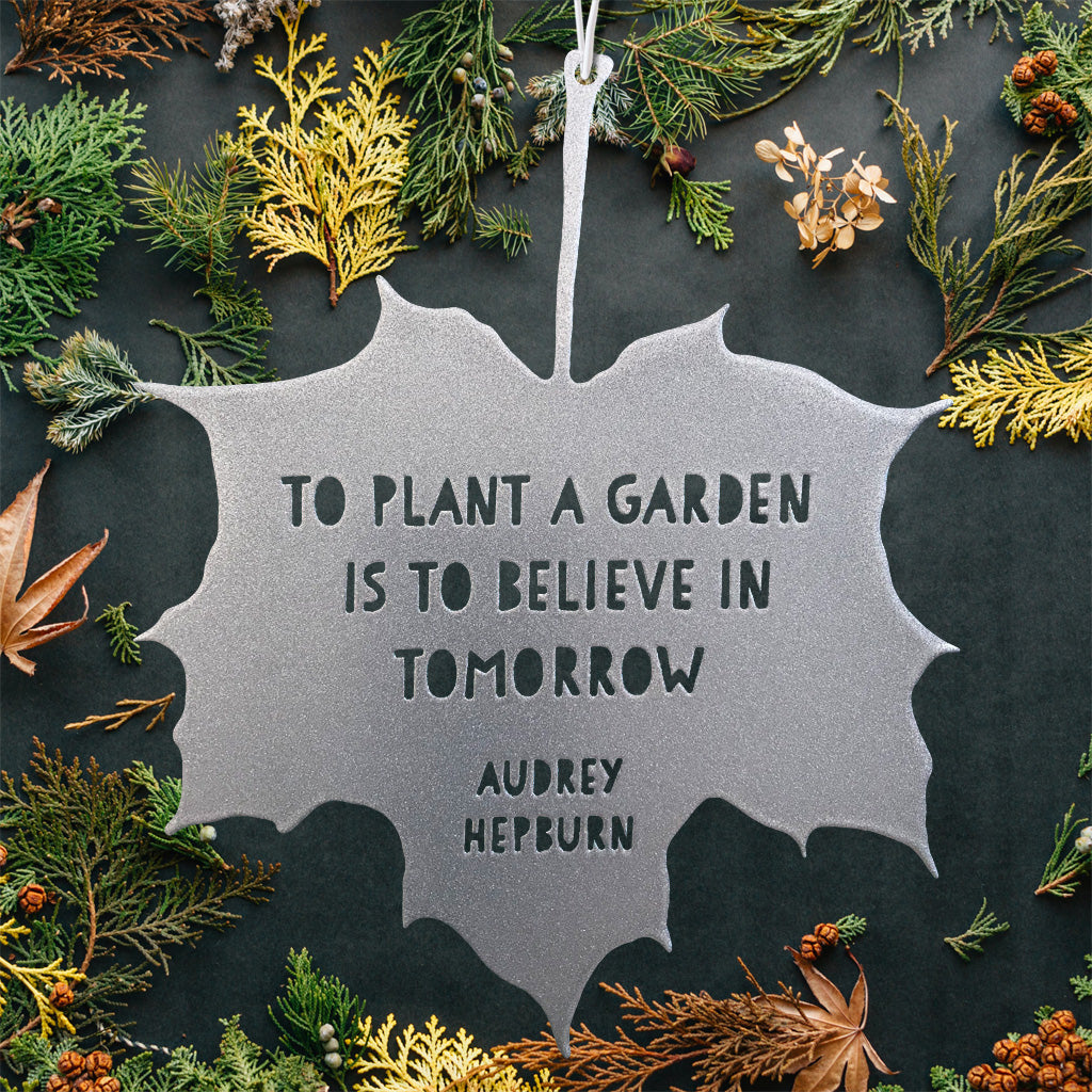 Leaf Quote To plant a garden is to believe in tomorrow Audrey